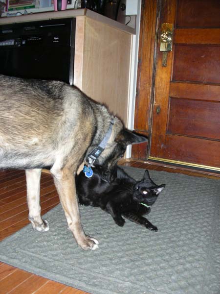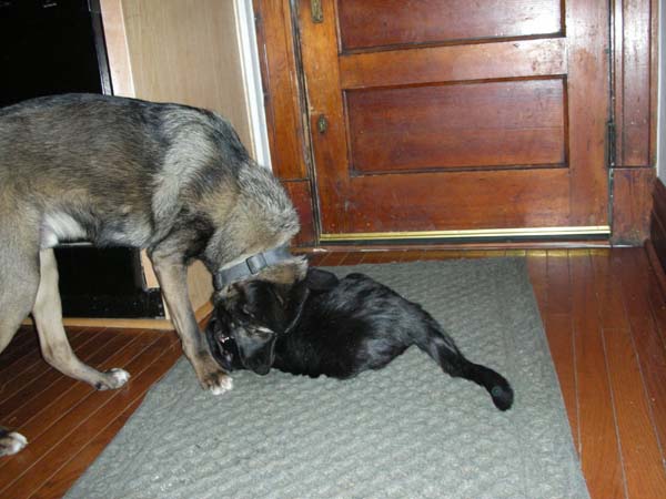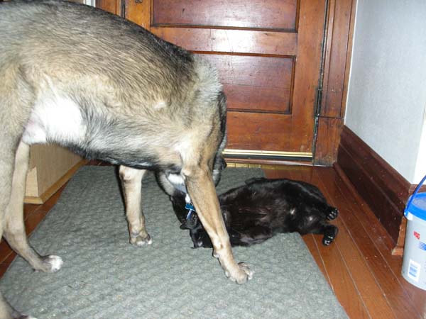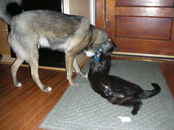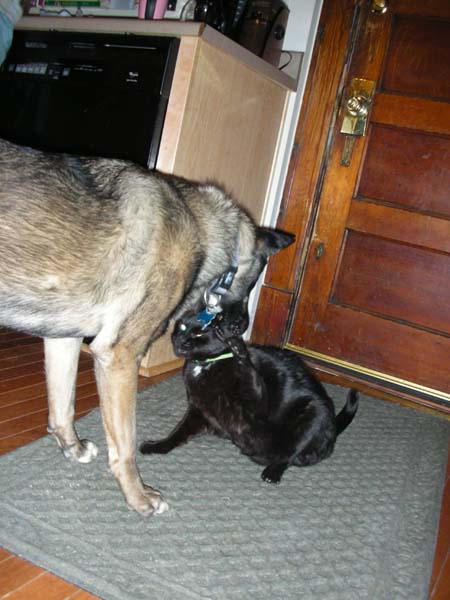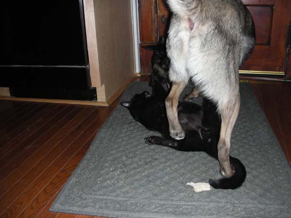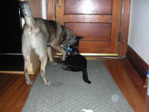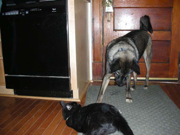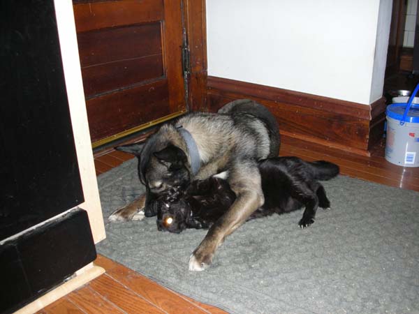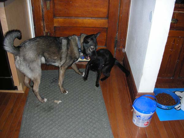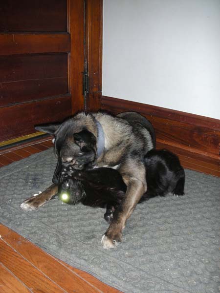 Frankie With a Treat, Yeast Farming, Chuck and his Ball, New Door Bell Installed, Measuring Malt for Brewing, Kitty and Chuck Wrestling, Pictures of Chuck and BBQ Brisket and Hanging Out in the Basement.